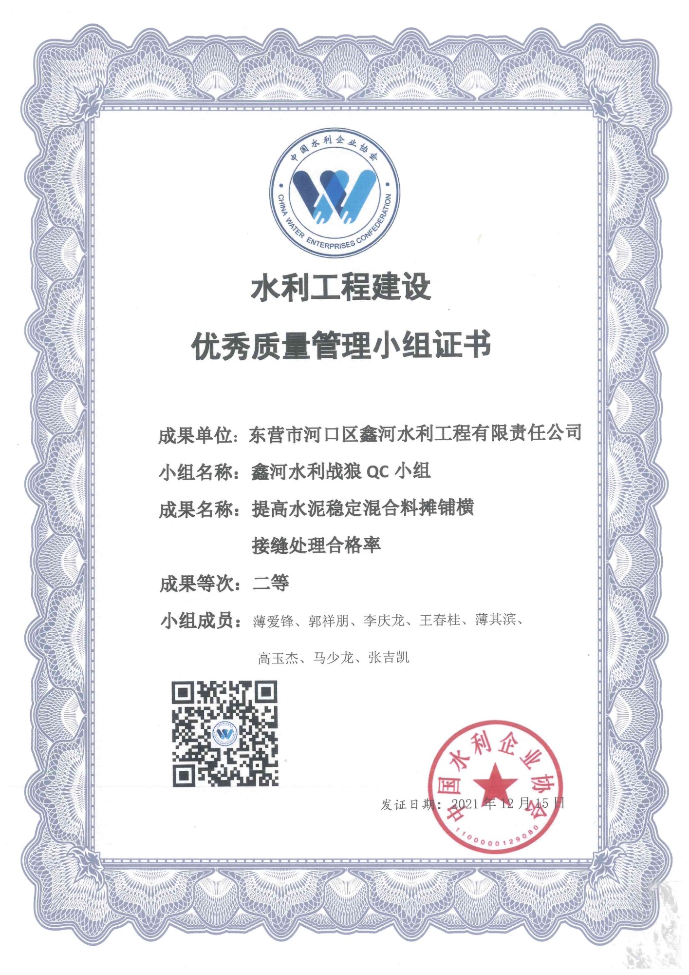 QC二等成果證書(中國水利企業(yè)協(xié)會)